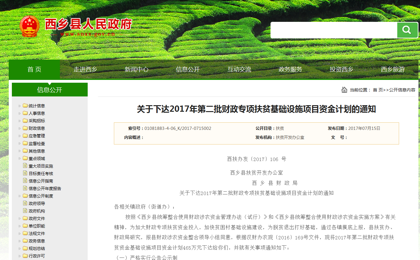 2017年,我县认真贯彻落实《条例》、《陕西省人民政府办公厅关于印发2017年政务公开工作要点任务分解细化方案的通知》(陕政办发〔2017〕31号)的要求,加强组织领导,明确责任分工,细化分解任务,星空app官方免费版工作的力度和深度不断增强,有效地保障了公民、法人和其他组织的知情权,政府工作的透明度进一步提高。