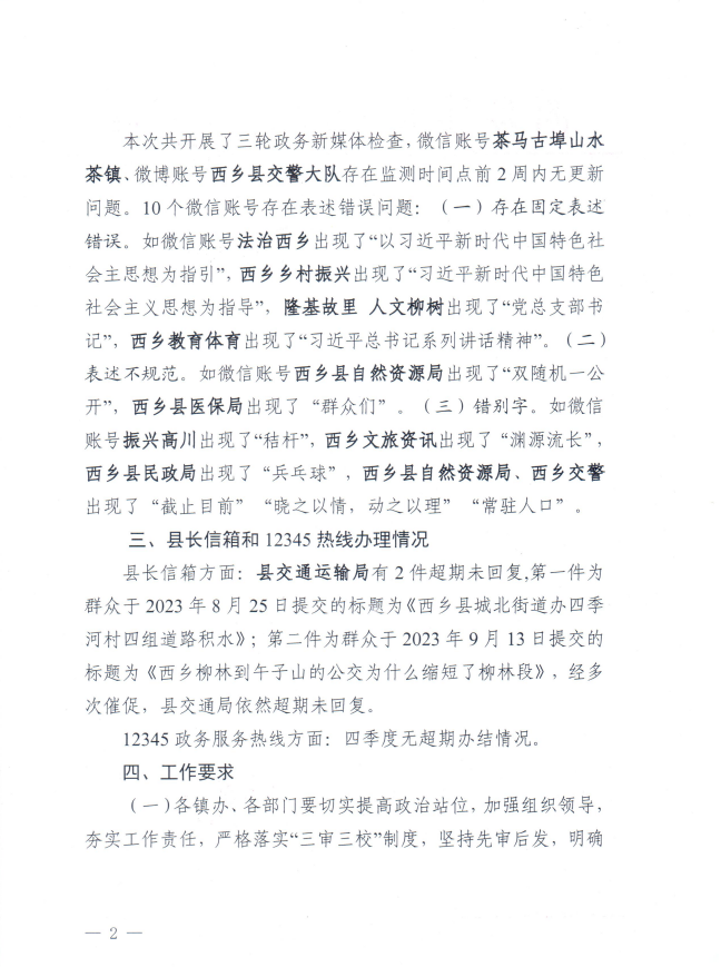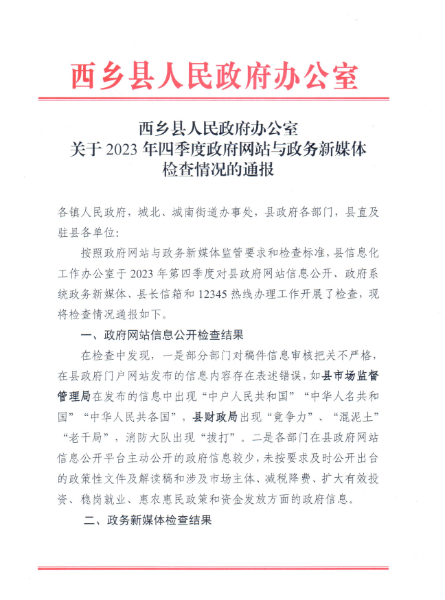 | 内容概述 | 2023年四季度政府网站与政务新媒体检查情况的通报 | ||||